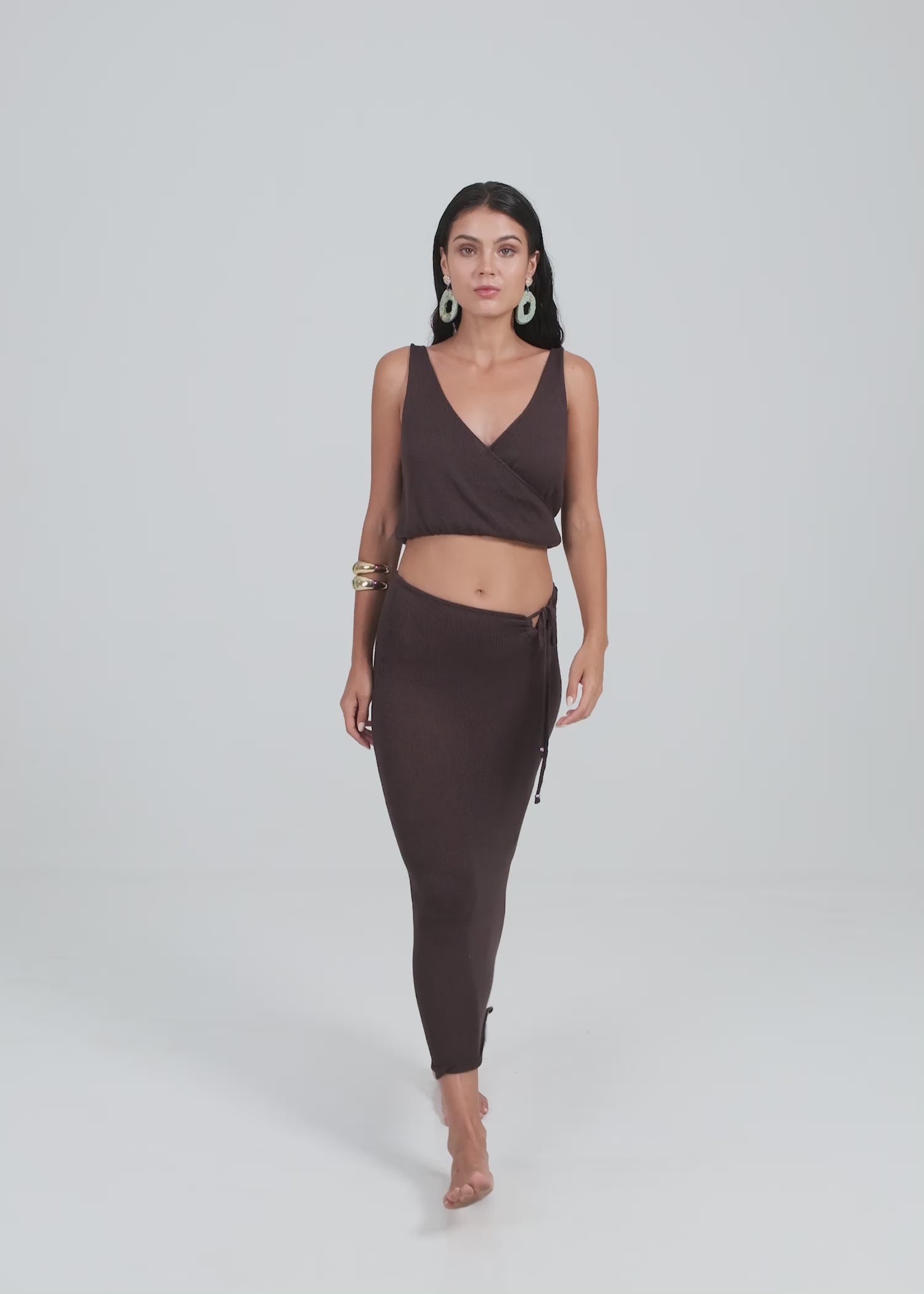 Looking effortlessly chic has never been easier than with OUEN's Aubrey skirt. The rich dark brown hue and maxi length instantly elevate your look with sophisticated, timeless style. But this knit skirt isn't just about appearances—the incredibly soft material feels like a dream against your skin. A flirty keyhole detail in front adds just the right touch of playfulness and flair. You'll want to live in this versatile wardrobe staple whether dressing it up with heels for date night or keeping things casual with sandals for brunch. The Aubrey skirt strikes that perfect balance between cozy and polished.