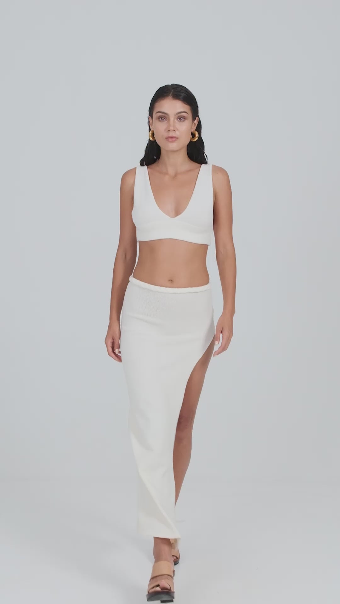 Understated elegance meets coastal sophistication. The Aurora Skirt in off white is a versatile year-round staple for any occasion, from sun-drenched resort escapes to evening soirees. Its timeless silhouette with a super high slit allowing for a glimpse of bronzed skin. Part of the Aurora resortwear set, this skirt makes a seamless transition from beach to dinner with just a few styling swaps. Timeless yet utterly modern, it's a wardrobe anchor you'll wear for seasons to come.
