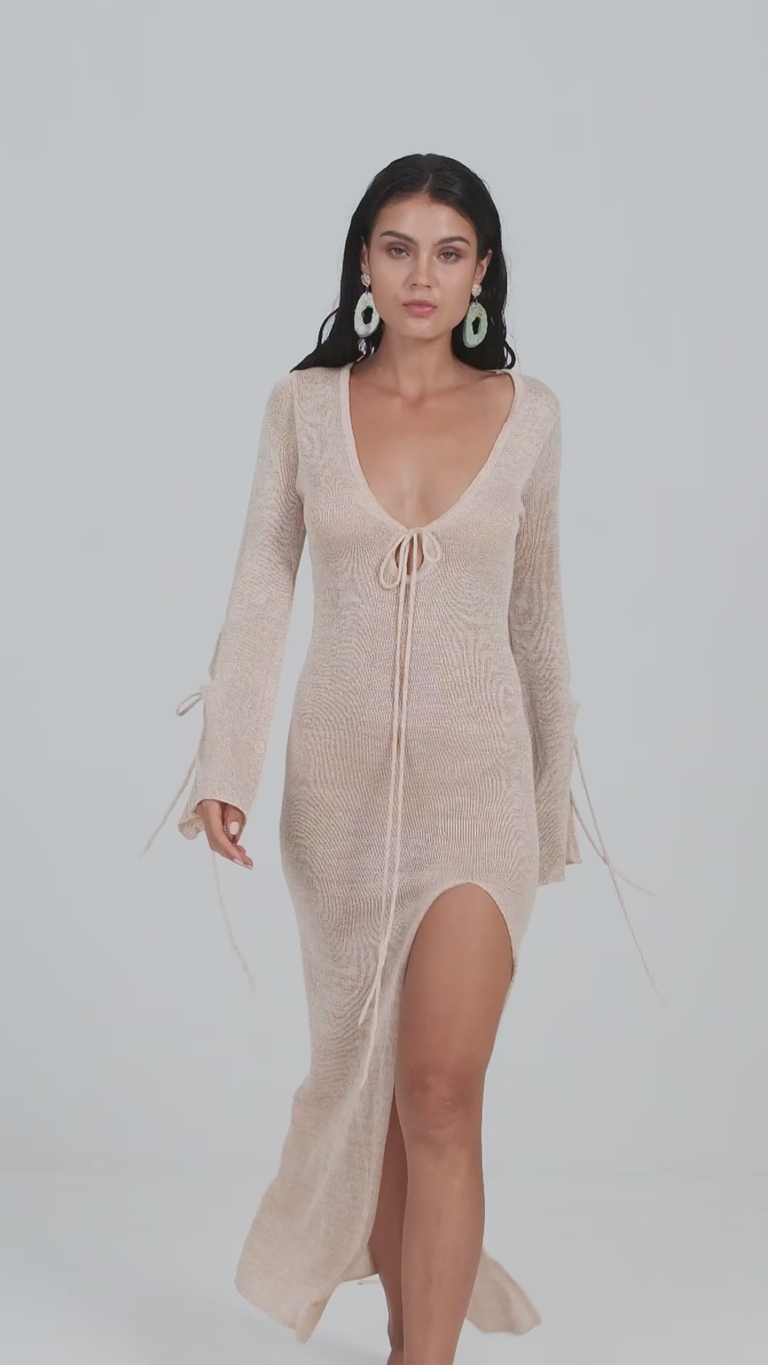 Make a statement everywhere you go in this striking yet timeless maxi dress from Island Threads. Crafted from a sand and gold blended thread to give a shimmering effect, this long sleeve style features tie detail, an alluring keyhole, low neckline and a high side slit to show a flash of leg. Wear your way with the Multi strap detail to form an elegant halter neck silhouette, while the flowing maxi length ensures a dramatic entrance wherever you wear it. The Island Threads Nefeli maxi dress allows you to transition effortlessly from day to evening in sophisticated, eye-catching style. This this easy throw-on-and-go black dress has you covered - literally.
